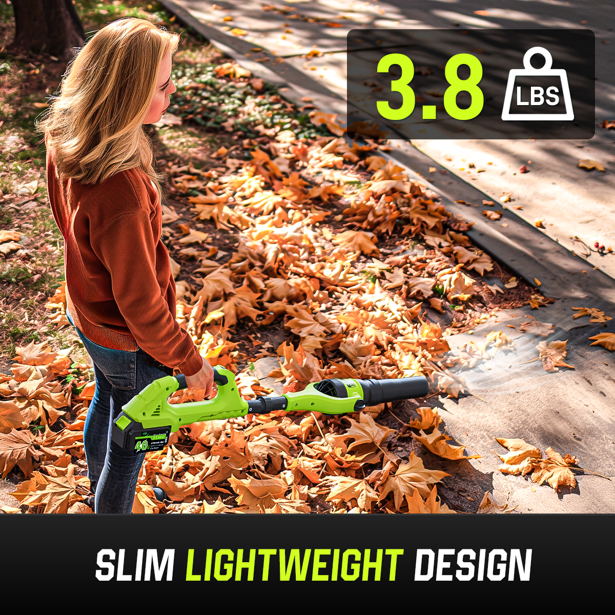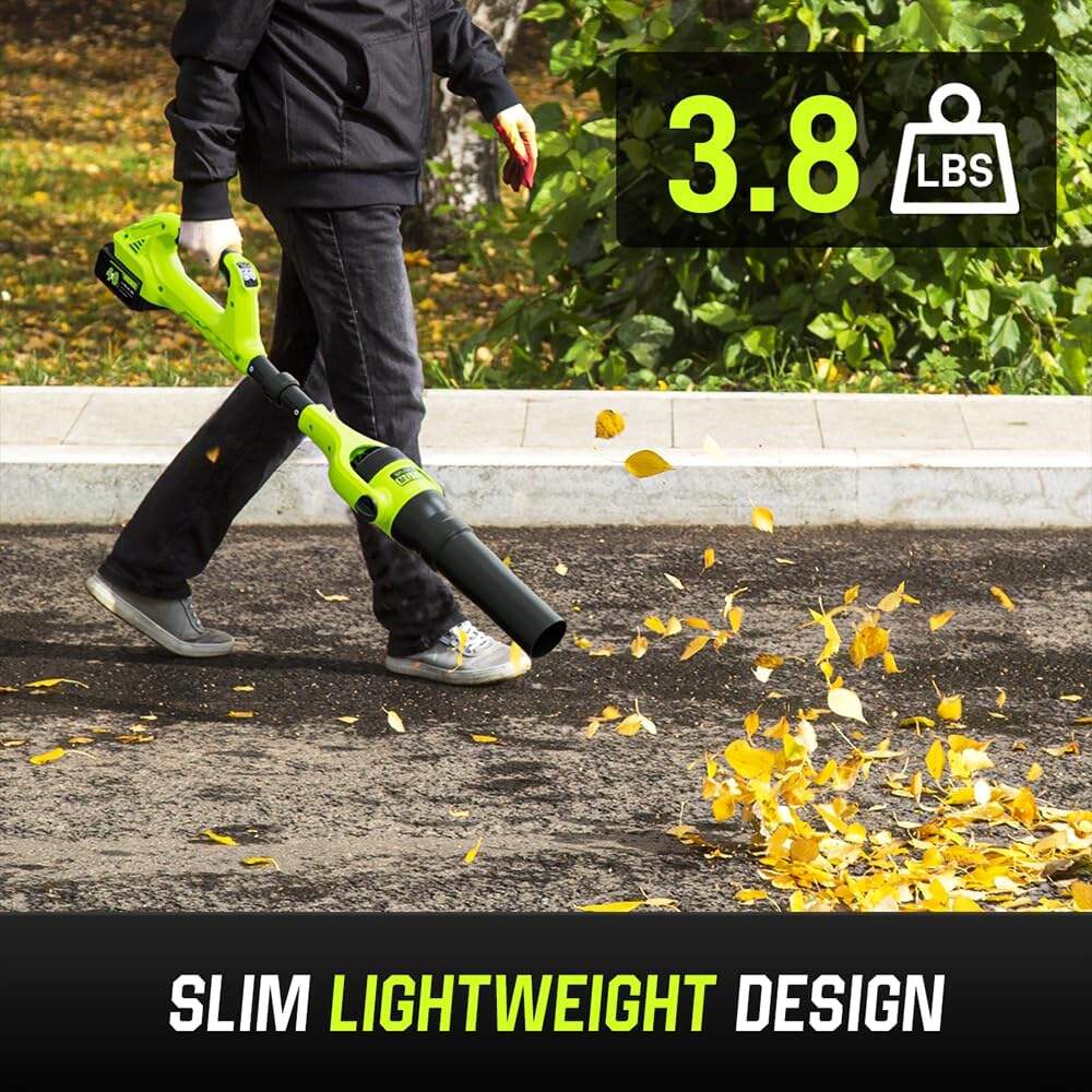 - Powerful Performance: With 580 CFM and 180 MPH, this brushless electric blower tackles leaves and debris effortlessly.