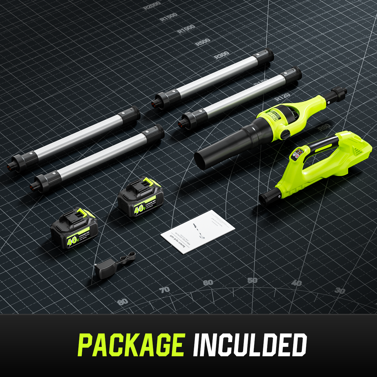Experience hassle-free gutter cleaning with the GardenJoy Cordless Leaf Blower 40V. Say goodbye to climbing ladders with its unique metal extension rod that increases length by 55 inches.